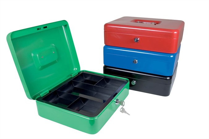 Lakkozott felületű, zárható, fém pénzkazetta