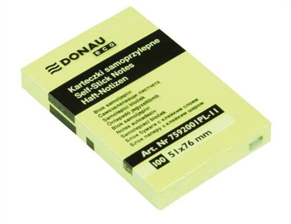 DONAU Öntapadó jegyzettömb, 51x76mm, 100 lap, DONAU "ECO", sárga