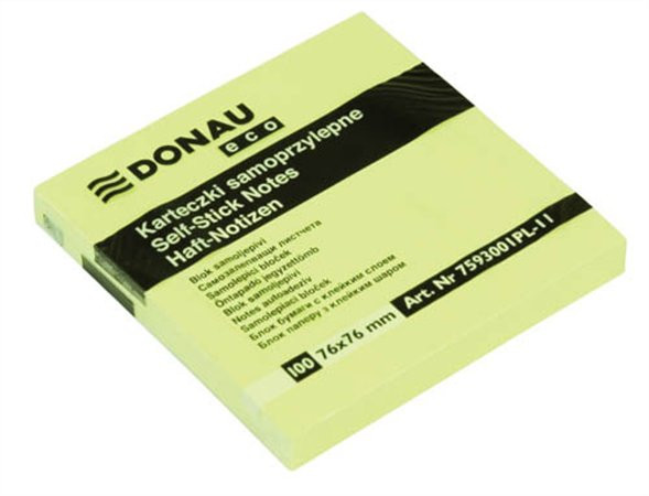 DONAU Öntapadó jegyzettömb, 76x76mm, 100 lap, DONAU "ECO", sárga