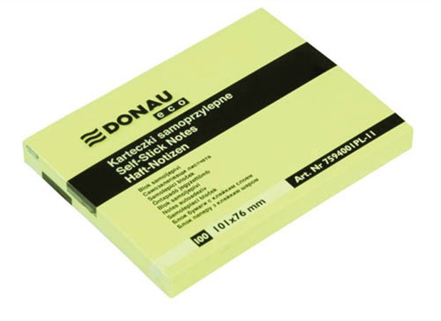 DONAU Öntapadó jegyzettömb, 101x76mm, 100 lap, DONAU "ECO", sárga