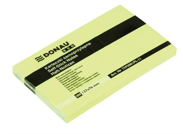 DONAU Öntapadó jegyzettömb, 127x76mm, 100 lap, DONAU "ECO", sárga