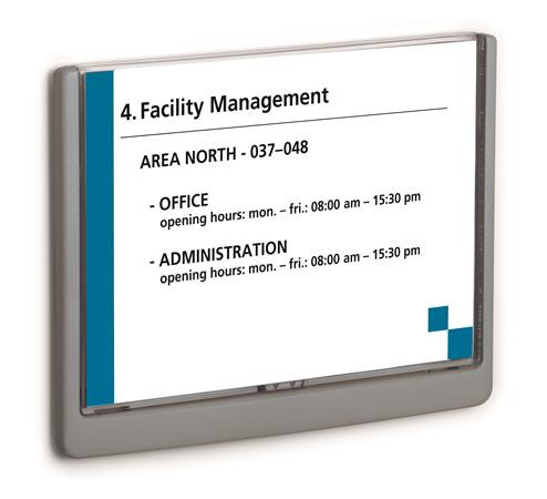 DURABLE Információs tábla, 210x148,5 mm, DURABLE "CLICK SIGN", szürke