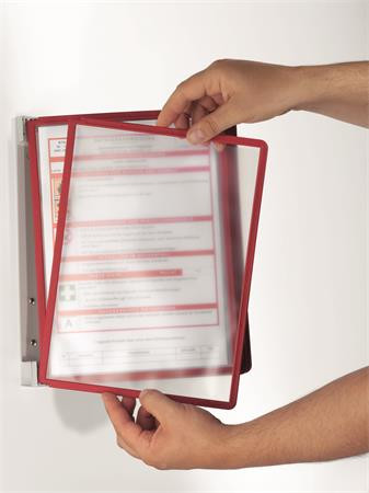 DURABLE Bemutatótábla tartó, fali, 5 db bemutatótáblával, DURABLE "VARIO® WALL 5", piros