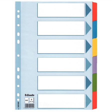 ESSELTE Regiszter, laminált karton, A4, 6 részes, ESSELTE "Mylar"