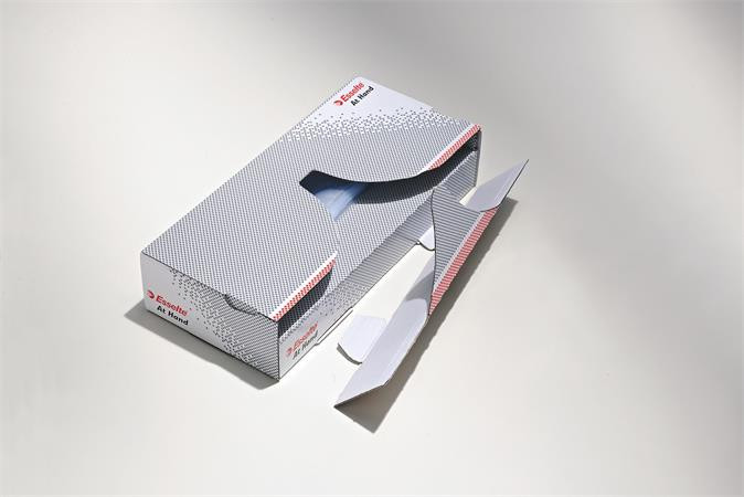 Lefűzhető tasak kényelmes használatot biztosító adagoló dobozban, mely mindig kéznél lehet