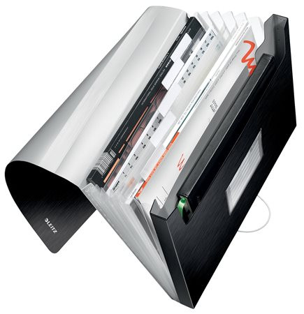 LEITZ Harmonikamappa, A4, PP, 6 rekeszes, LEITZ "Style", szaténfekete