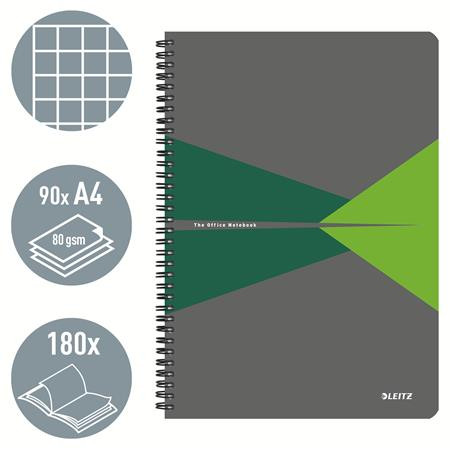 LEITZ Spirálfüzet, A4, kockás, 90 lap, PP borító, LEITZ "Office", szürke-zöld