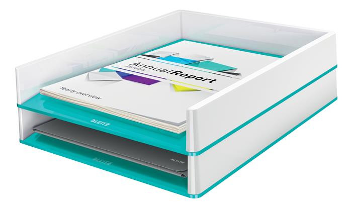 - szembetűnő, prémium minőségű, kettős színhatású Leitz irattálca fényes felülettel
