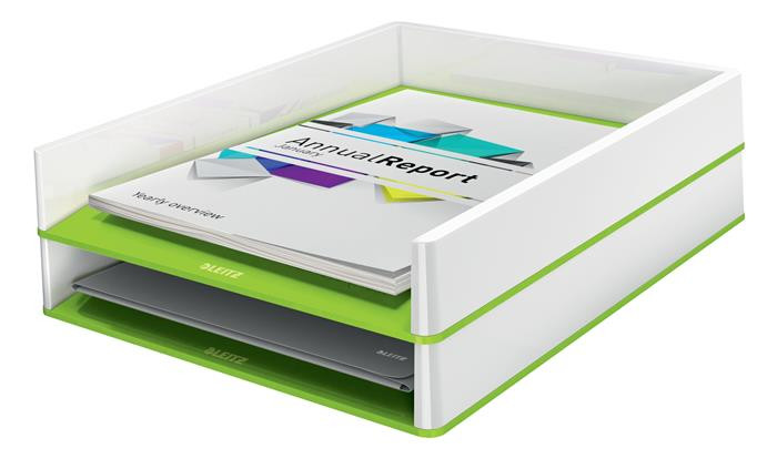 - szembetűnő, prémium minőségű, kettős színhatású Leitz irattálca fényes felülettel