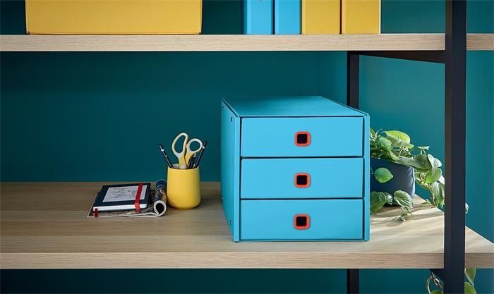 LEITZ Irattároló, laminált karton, 3 fiókos, LEITZ "Cosy Click&Store", nyugodtkék