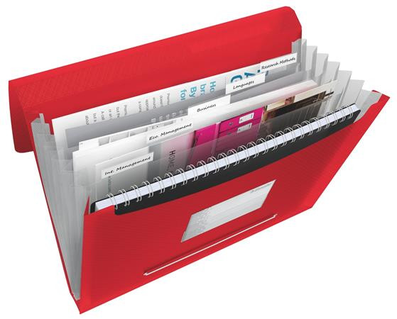 ESSELTE Harmonikamappa, A4, PP, 6 rekeszes, ESSELTE "Vivida", piros