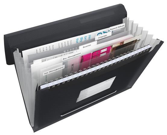 ESSELTE Harmonikamappa, A4, PP, 6 rekeszes, ESSELTE "Vivida", fekete