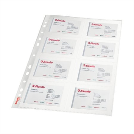 ESSELTE Névjegytartó genotherm, lefűzhető, A4, 105 mikron, víztiszta, 16 férőhelyes, ESSELTE