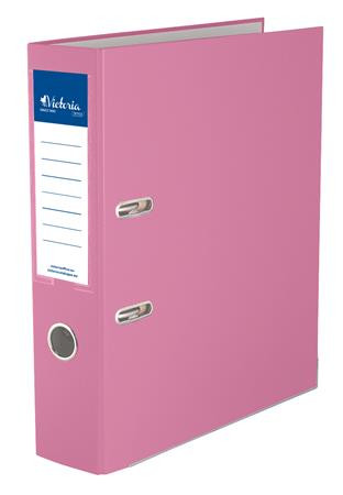 VICTORIA OFFICE Iratrendező, 75 mm, A4, PP/karton, élvédő sínnel, VICTORIA OFFICE, "Basic", rózsaszín