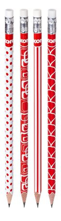 KORES Grafitceruza radírral, HB, háromszögletű, KORES, piros-fehér