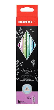 KORES Grafitceruza radírral, HB, háromszögletű, KORES "GRAFITOS Style", vegyes metál színek
