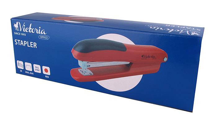 VICTORIA OFFICE Tűzőgép, 24/6, 26/6, 20 lap, VICTORIA OFFICE, "Full-Strip", piros