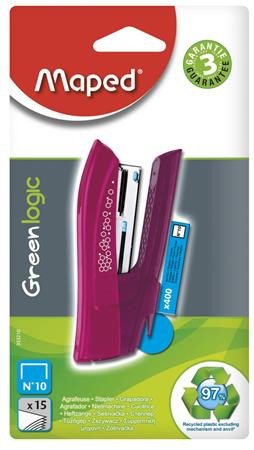 MAPED Tűzőgép, No. 10, 15 lap, MAPED "Greenlogic Pocket", vegyes színek