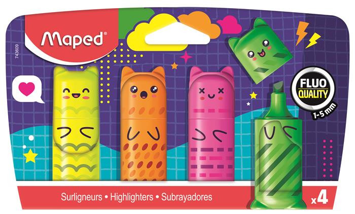 MAPED Szövegkiemelő készlet, 1-5 mm, MAPED „Fluo Peps Mini Kawaii”, 4 különböző szín