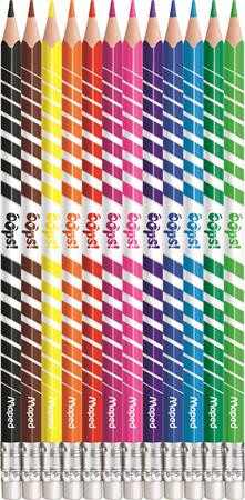 MAPED Színes ceruza készlet, háromszögletű, radírozható, MAPED "Color'Peps Oops", 12 különböző szín