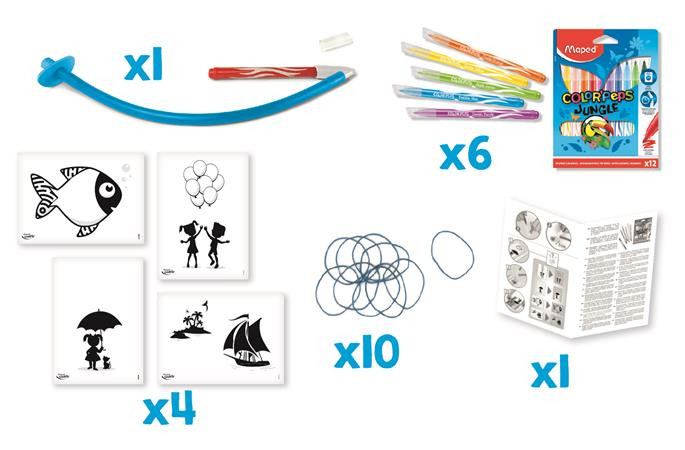 - a doboz tartalma: 1 db festékszóró, 6 db Jungle filctoll, 4 előrenyomtatott kártya, 10 db gumigyűrű