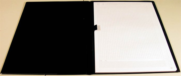 - bal oldalán zsebbel, jobb oldalán kivehető kockás jegyzettömbbel