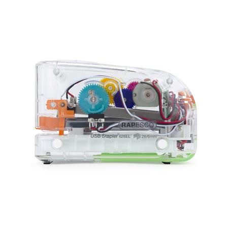 RAPESCO Tűzőgép, 26/6, 15 lap, elemes, USB töltővel, RAPESCO "626EL", átlátszó