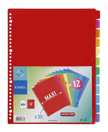VIQUEL Regiszter, műanyag, A4 Maxi, 12 részes, VIQUEL