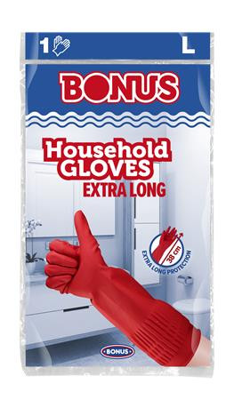 BONUS Gumikesztyű, háztartási, latex, extra hosszú, 38 cm, L méret, BONUS, piros
