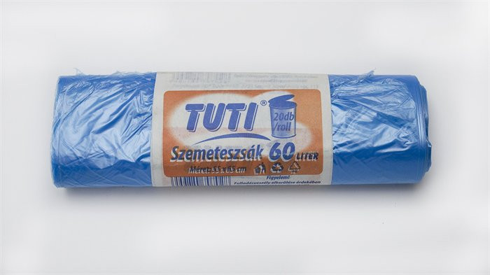 TUTI Szemeteszsák, 60 l, 20 db, 55x65 cm, 9 µ, TUTI, kék