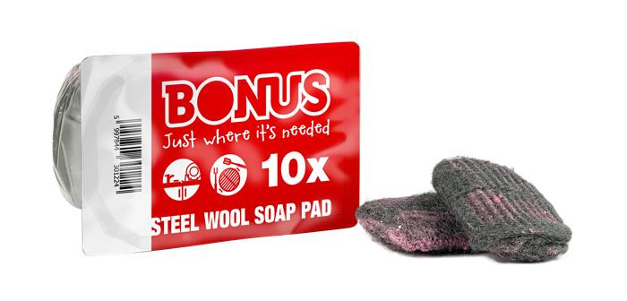 A Bonus rozsdamentes szappanos párnáival takarékosabban és könnyedén távolíthatja el az igazán makacs szennyeződéseket. Használatukhoz nem szükséges további vegyszerek alkalmazása, mivel a fémpárnák már tartalmazzák az intenzív súroláshoz és zsíroldáshoz szükséges mennyiségű citrom illatú tisztítószert. A roszdamentes szappanos fémpárnák különlegessége, hogy nagyon vékony acél szálakból készül, ezért azok egy érdes felületet képeznek, amivel a fém edényekbe vagy a tepsibe égett ételmaradékot, a grillrácsot, a tűzhelyet, a konyhai lefolyót, de akár akár háztartási fém felületekre rakódott rozsdát is könnyedén megtisztíthatjuk.