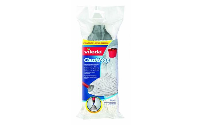 A Vileda Classic Mop Gyorsfelmosó Pamut fej kitűnő minőségű, nagyon jó nedvszívó képességű pamutból készült, tartós fehér felmosó fej.