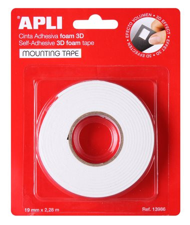 APLI Ragasztó tekercs, 3D, kétoldalas, szivacs, APLI, 19 mm x 2,28 m, fehér
