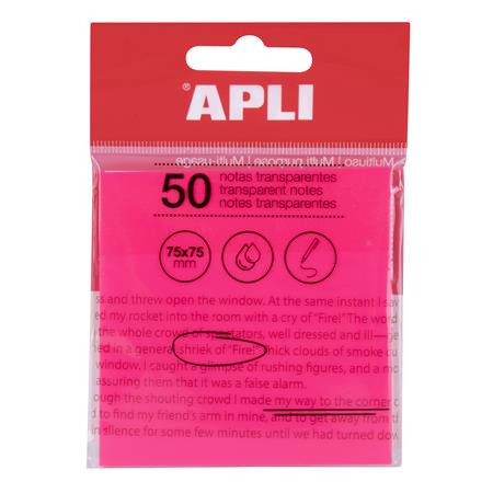 APLI Öntapadó jegyzettömb, átlátszó, vízálló, 75x75 mm, 50 lap, APLI, rózsaszín
