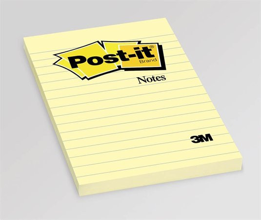3M POSTIT Öntapadó jegyzettömb, 102x152 mm, 100 lap, vonalas, 3M POSTIT, sárga