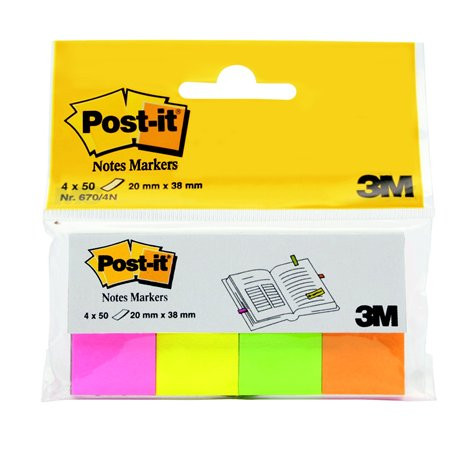 3M POSTIT Jelölőcímke, papír, 4x50 lap, 20x38 mm, 3M POSTIT, neon vegyes