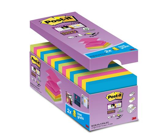 3M POSTIT Öntapadó jegyzettömb csomag, "Z", 76x76 mm, 16x90 lap, 3M POSTIT, "Super Sticky", vegyes