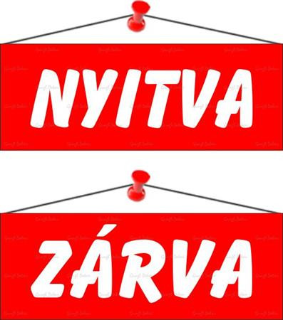 . Információs tábla, 22x8,5 cm, kétoldalas, "Nyitva/Zárva", piros