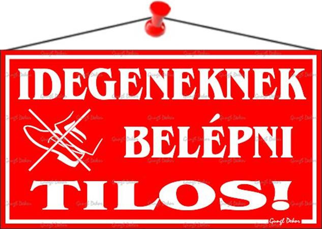 . Információs tábla, 22,5x12,5 cm, "Idegeneknek belépni tilos!", piros