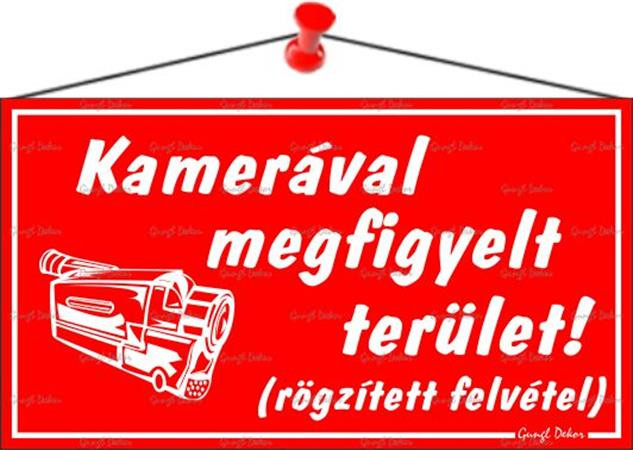 . Információs tábla, 22,5x12,5 cm, "Kamerával megfigyelt terület", piros
