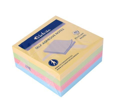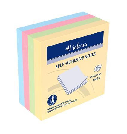 VICTORIA OFFICE Öntapadó jegyzettömb, 75x75 mm, 400 lap, VICTORIA OFFICE, pasztell