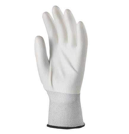 Tenyéren fehér poliuretánnal mártott. Fehér precíziós kesztyű