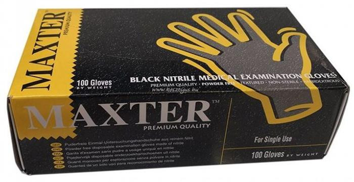 . Védőkesztyű, egyszer használatos, nitril, S méret, 100 db, púder nélküli, fekete