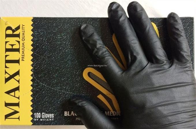 . Védőkesztyű, egyszer használatos, nitril, XL méret, 100 db, púder nélküli, fekete
