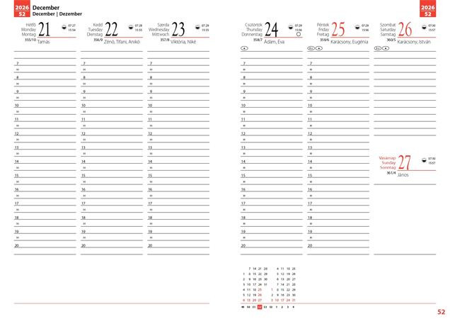 - Zsebnaptárak fekvő