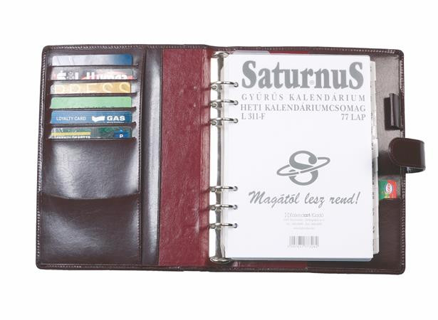 SATURNUS Kalendárium, gyűrűs, betétlapokkal, "M", újrahasznosított bőr, SATURNUS, "418", barna