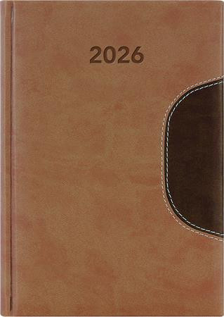 Két harmonizáló színű, bőrhatású anyag egyedi összeillesztésével, gyönyörű varrással készült agendák nagy méret-és színválasztékban.