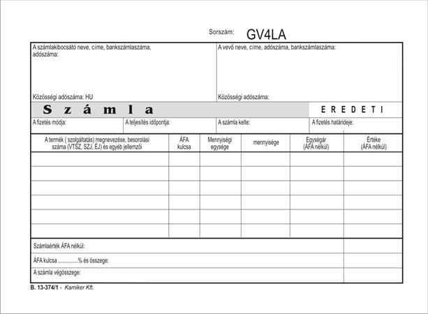VICTORIA PAPER Nyomtatvány, számlatömb, egy ÁFÁs, 50x3, A5, fekvő, VICTORIA PAPER, "B.13-374", 10 tömb/csomag