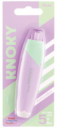PENTEL Hibajavító roller, 5 mm x 6 m, utántölthető, PENTEL "Knoky", világoszöld-lila