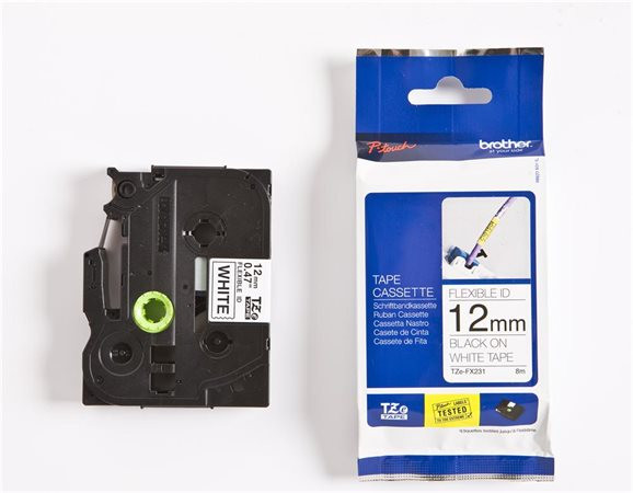 BROTHER Feliratozógép szalag, flexibilis ID, 12 mm x 8 m, BROTHER, "TZe-FX231" fehér-fekete